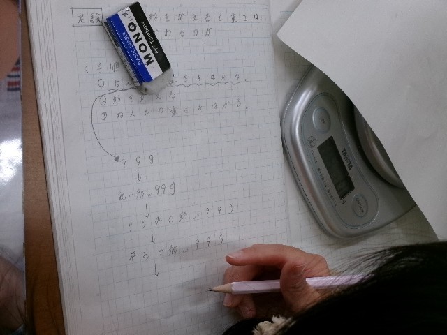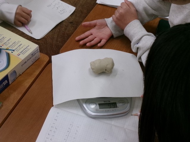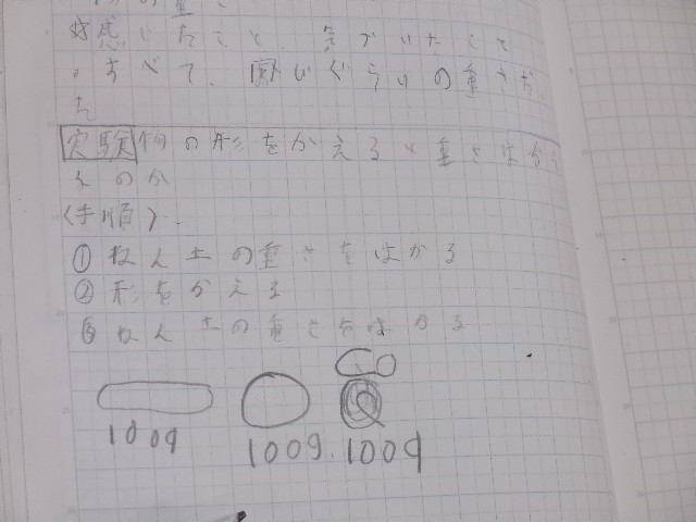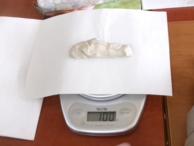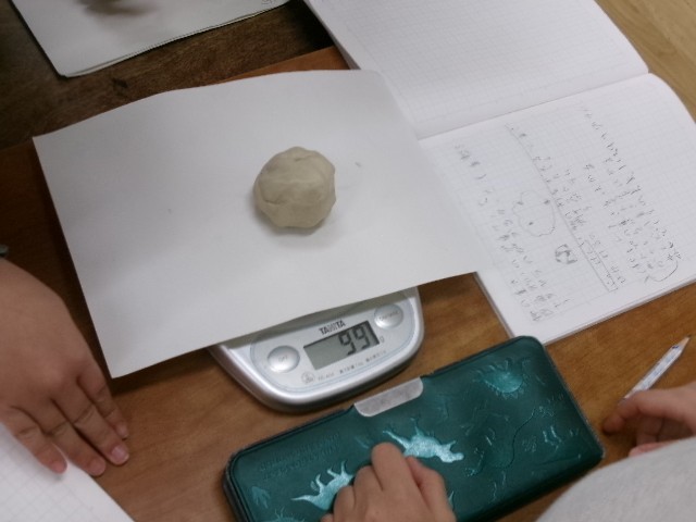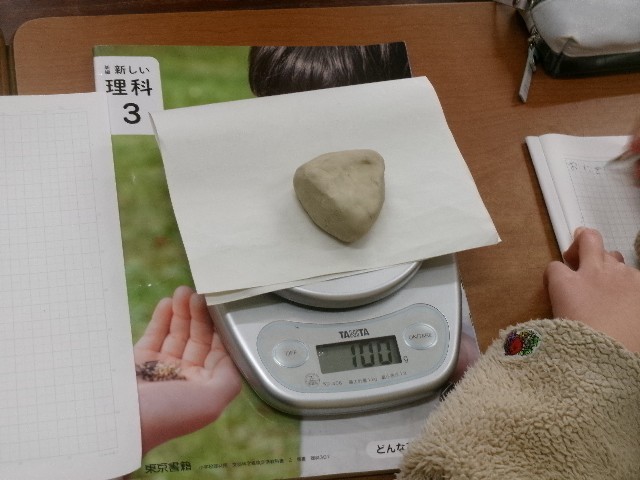 最初が100gだった班の粘土は形が変わっても100g?(…99gだった班は形が変わっても99g?)