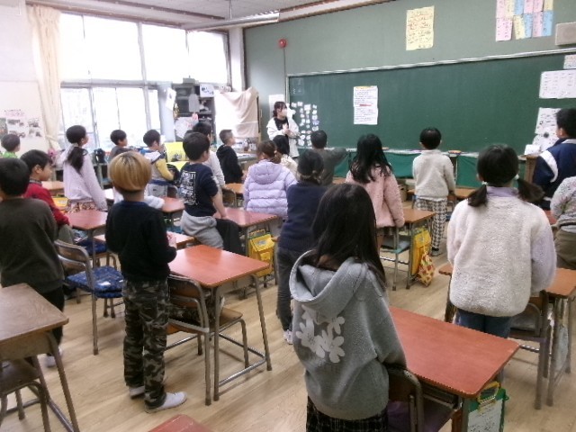 今日は、放送で音楽を流し、各教室で全校一斉に歌ってみました。