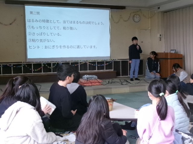 「はるみ」の紹介の後、お米に関するクイズが何問か出されました。