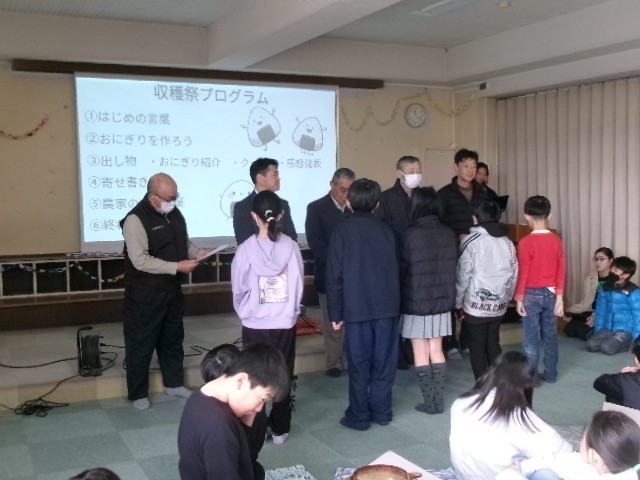 田植え、草取り、稲刈りと体験してきた5年生が、お米の収穫を祝います。