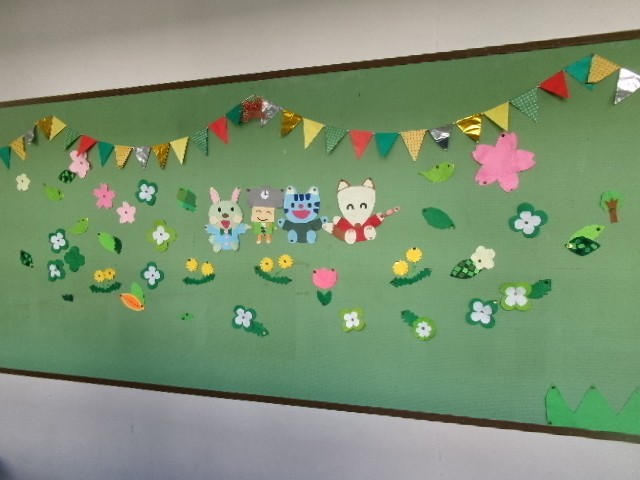保健室横のスタジオ前の廊下の壁も飾ってくださいました。