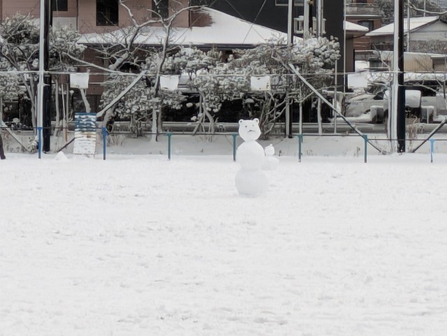 運動場では、何人かの子が遊びに来ていて、雪合戦や雪だるま作りを楽しんでいました。