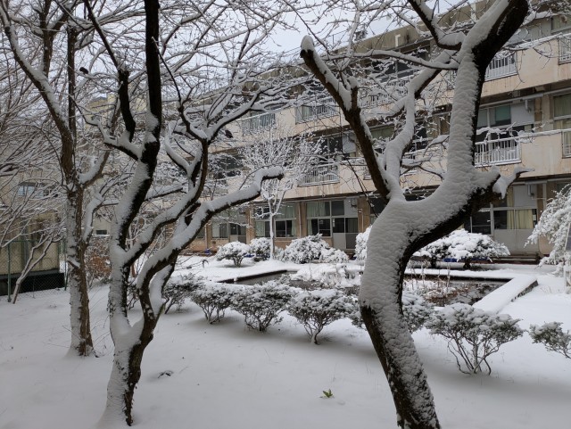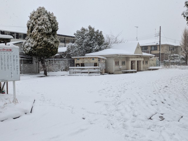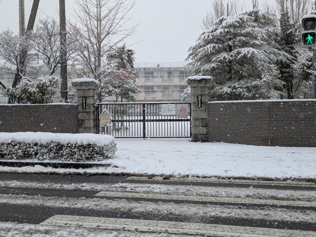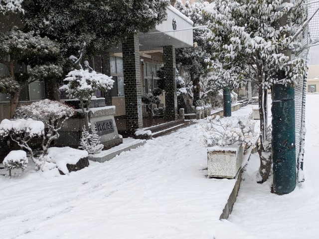 暦では立春を迎えたばかりですが、昨日から降った雪で、国府津小学校の周りは真っ白になりました。