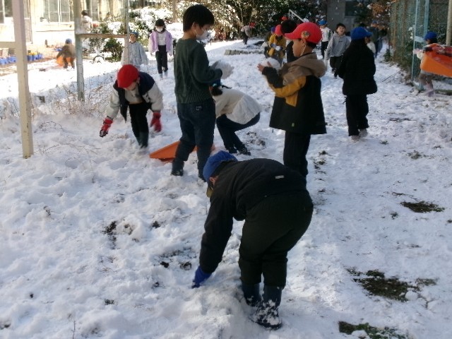 1年生は、中庭の雪を独占!