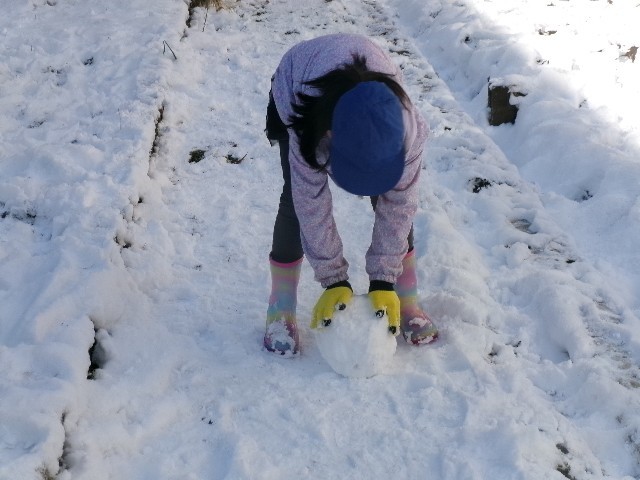 雪だるまを作ったり、ウサギを作ったり…。