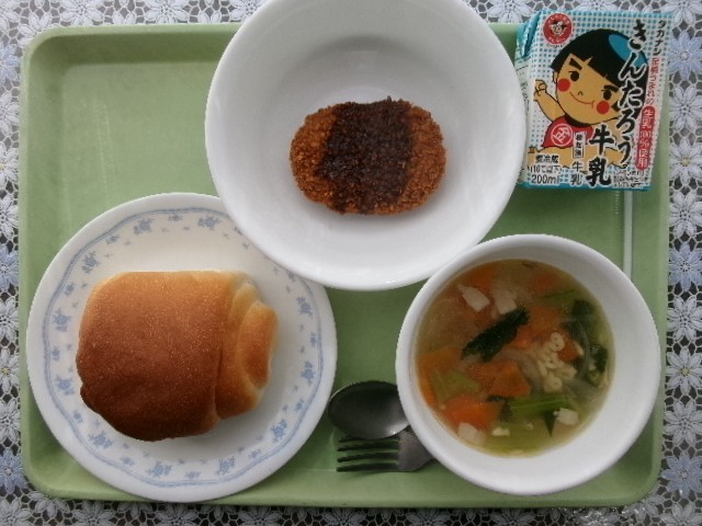 米粉ロールパン メンチカツ☆ ABCスープ☆ 牛乳