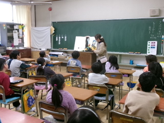 月に1回程度、朝の時間、4年生以下はボランティアさんによる読み聞かせがあります。
