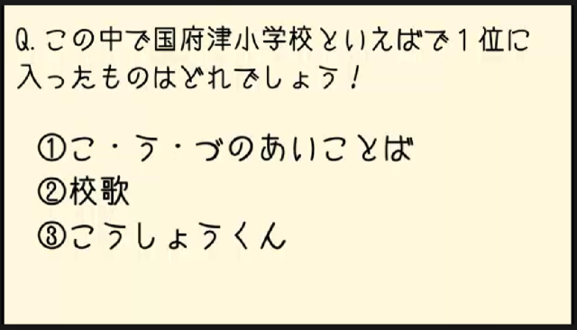 第1問:この中で「国府津小といえば」で3位に入ったものは何でしょう。