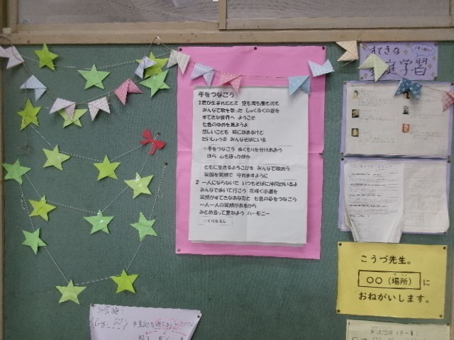 このテーマにした理由は、6年生に輝く未来へ大きく羽ばたいてほしいからです。