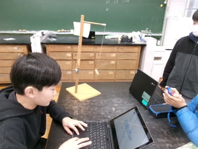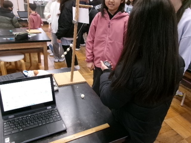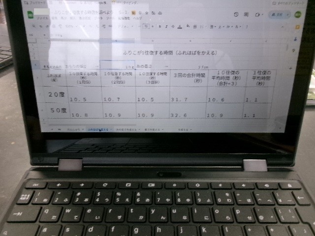 ふりこが1往復する時間は、何によって決まるのか(何によって変わるのか)を調べています。