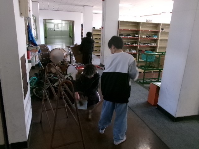 ・昇降口前の体育倉庫の掃除(用具を全部取り出して掃除&整理整頓)
