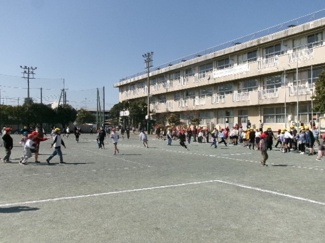 寒い日が続いた今日この頃…寒さに負けず外で元気に体を動かせる楽しい遊びを追究して、5日(木)の昼休み、運動委員会が全校児童を対象にした「火水木ゲーム」を楽しむ集会を開きました。