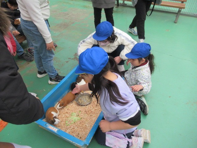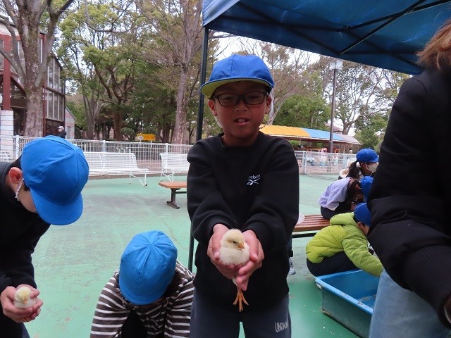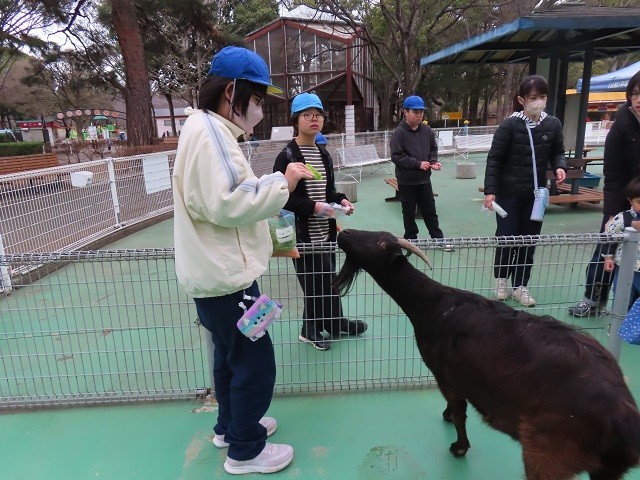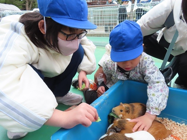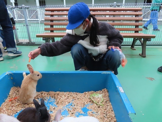 到着後、早速、動物たちとふれあい。