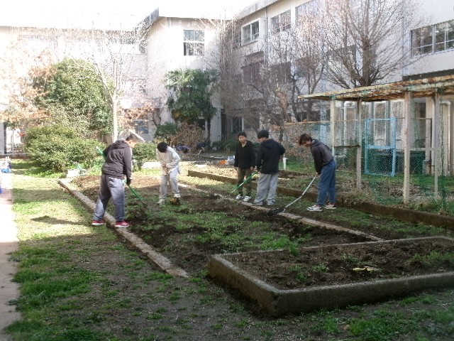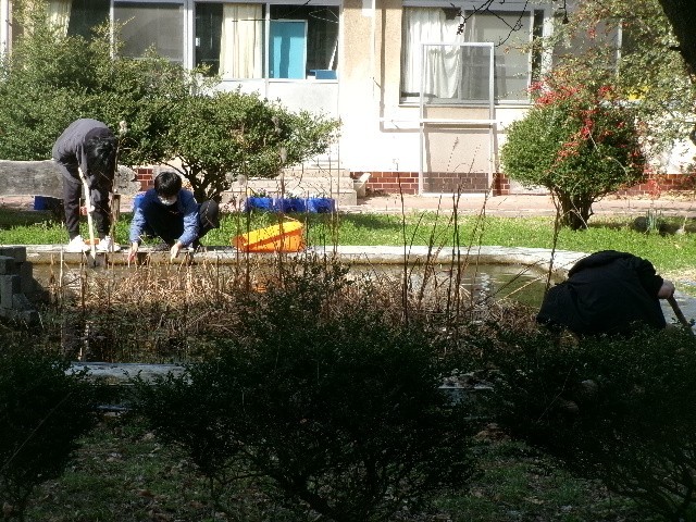 中庭を整備しているグループもいました。
