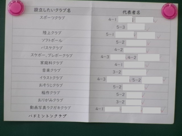 今のところ、13のクラブ活動が希望として出されました。
