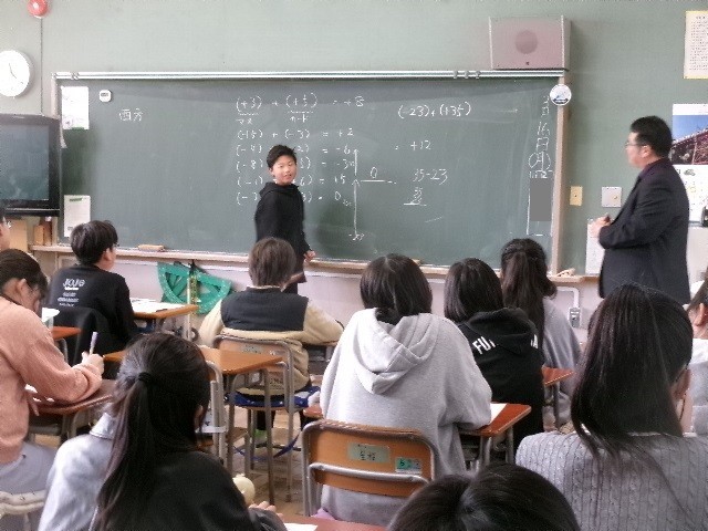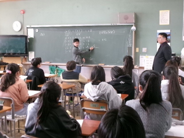先週の金曜日13日には、国府津小の6年生が国府津中に行き、1組は数学、2組は保健体育の授業を受けました。