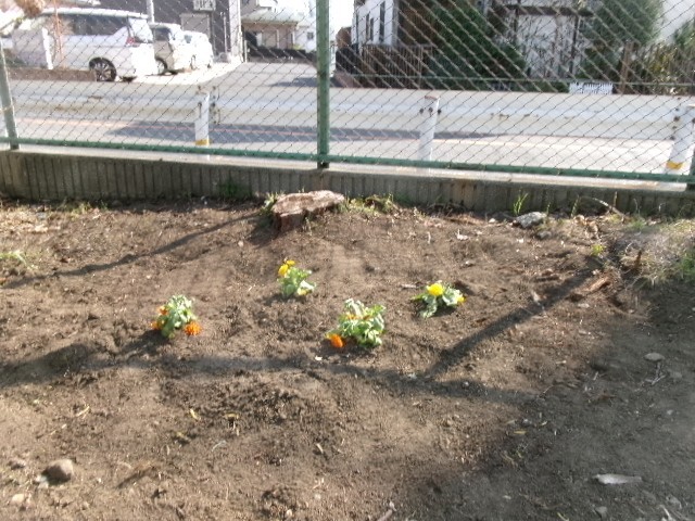 「校庭の南側(校庭の防球ネットとバス通り歩道フェンスの間…国府津小の敷地内です)にきれいな花を植えて、花壇のようにしたい!」が実現。