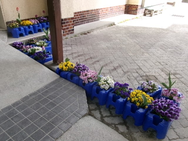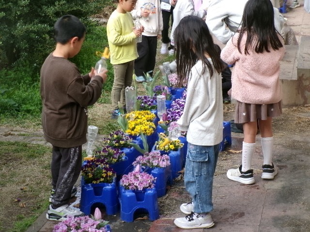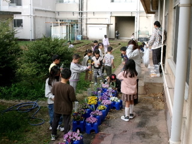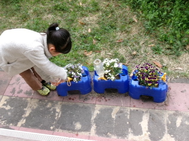 この後、卒業式の会場である体育館前に、植木鉢を移動しました。