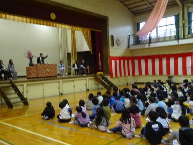最後に全校児童で校歌斉唱。
