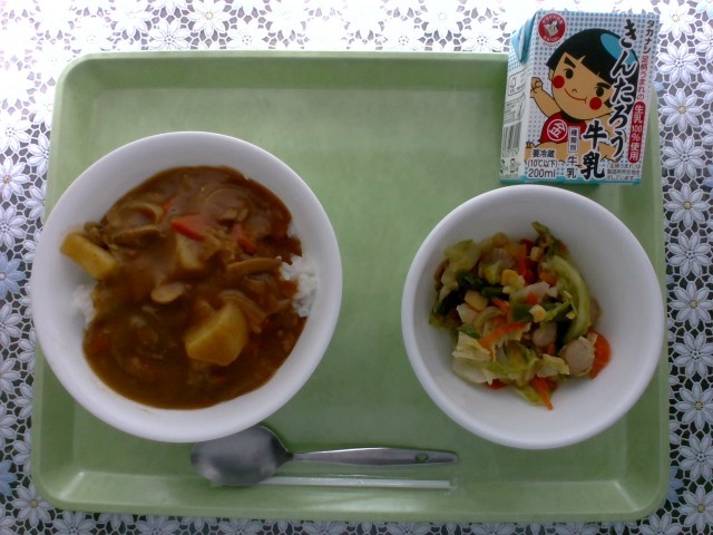みなさんの給食は、国府津共同調理場から届きます。調理場では、国府津小学校、下曽我小学校、国府津中学校の給食、約880人分を作ります。今年は2人の栄養士と、13人の調理員さんで作っていきます。毎日「おいしい」と言って食べてもらえるように心をこめて作ります。これから給食の時間を楽しみにしていてください。