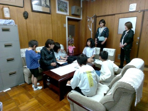 まず、校長室、職員室、事務室を探検していたLRの子どもたちがやってきました。