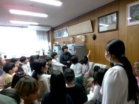校長先生にたくさん質問して、校長室のことに詳しくなった2年生。