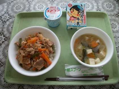 スタミナ丼 根菜汁 ヨーグルト 牛乳