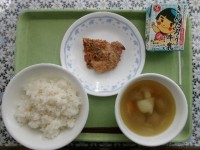 食パン チョコレートクリーム 鶏肉のレモンソース コーンポタージュ 牛乳