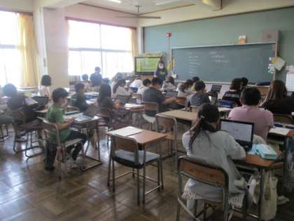 ヒアリング後、校内の授業の様子を参観したいというご希望があったので、5校時目の授業をご案内しました。急なご希望だったので、「ICTを使っている授業とは限りませんよ。」とお話をしましたが、「それでもかまいません。教員の研修を企画することはあっても、子供たちの授業の様子・雰囲気を直接見る機会が少ないので、どのような授業でもよいのでぜひ見させてほしい。」とのことでした。
