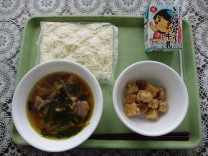 肉うどん 高野豆腐のから揚げ 牛乳