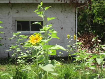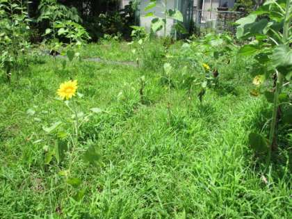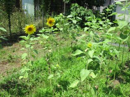 1週間前にホームページで紹介をしたときには、まだ咲いていなかったヒマワリですが、この1週間の間に、黄色い花が咲きました。ヒマワリが咲くと「いよいよ夏が来た!」という感じですね。茎が太く、まだまだ背が伸びていきそうなヒマワリもあります。この後、大きな花が咲くのではないかと期待しています。
