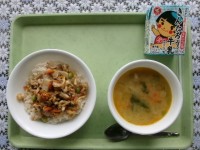 麦入りご飯 うさぎハンバーグ 白玉だんご汁 お月見ゼリー 牛乳