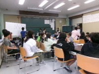 家庭科の時間、雑巾づくりに取り組んでいます。