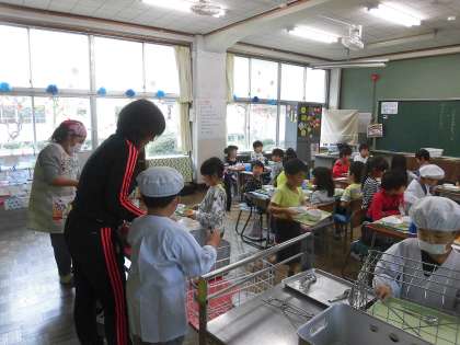 今年度も1年生の給食時に、「給食ボランティア」の方々がサポートに来てくださっています。毎年のことですが、給食の準備、配膳、片付けなど、さまざまな場面でご協力いただいています。ありがとうございます。