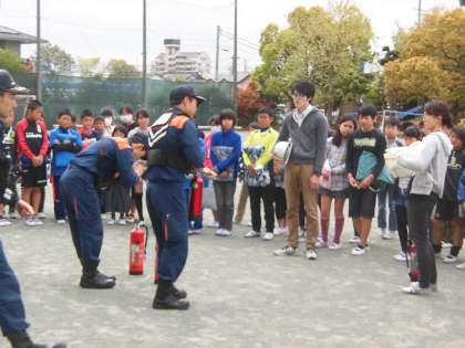 27日(木)に、火災による避難訓練を行いました。今回は、第1家庭科室から出火し、煙が充満していて、前が見えづらいという状況を想定したものでした。児童は、避難経路にしたがい、第一次避難場所であるグラウンドへ安全に避難する訓練を行いました。職員は、消防署への通報訓練や疾病者の児童を避難させる訓練などを実施しました。消防署の方々からは、『「お・か・し・も」がよく守られ、立派な訓練でした。』とのお褒めの言葉をいただきました。火災訓練は、英語では「Fire Drill」と言います。勉強と同じで、ドリルを繰り返すことが必要ですね。