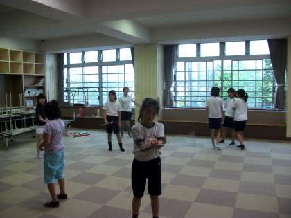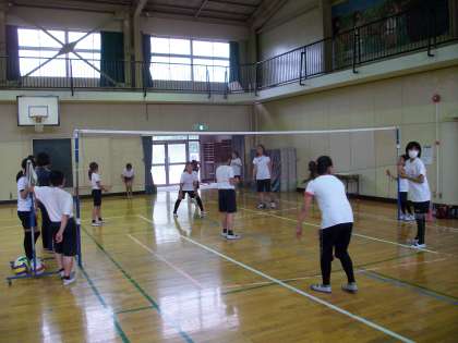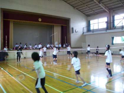 今日は雨天のため,室内のクラブ活動を中心に紹介します。体育館では,バレーボールクラブとバドミントンクラブが行っていました。多目的ホールでは,バトンクラブが音楽に合わせて行っていました。