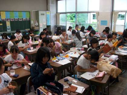2年生の教室では,手芸クラブが作業をしていました。4年生に人気のクラブで一クラスに11人希望していました。フエルトで作品を仕上げていました。