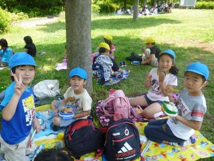 記念写真をみんなで撮りました。楽しみは昼の弁当です。おいしくいただきました。お菓子交換も楽しみの一つです。