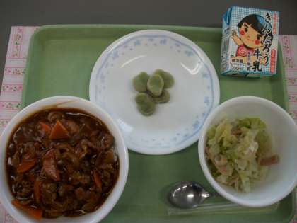 牛乳 牛乳 ハヤシライス キャベツとハムのソテー そら豆