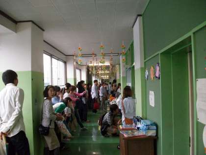 雨天の中,多くの皆様の参観に感謝申し上げます。教室に入りきれなく廊下で様子を参観をしていただくほどでした。
