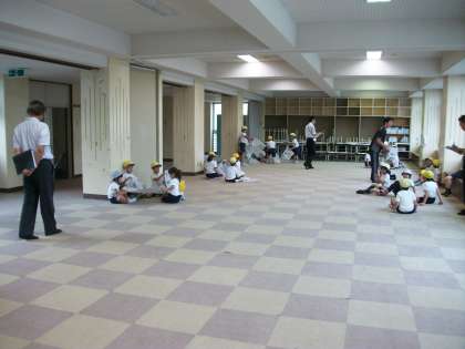 6月11日(水)初任者研修の授業が2時間目にありました。2年生の体育の学習でした。グラウンドでの予定でしたが,雨天のため急遽多目的ホールで行いました。