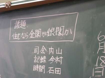 室町時代の建築物である金閣寺と銀閣寺について,テーマに従って「ディベート」を行っていました。