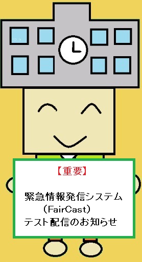 本日の12時50分に、緊急時情報発信システム(FairCast)のテスト配信を行いました。
