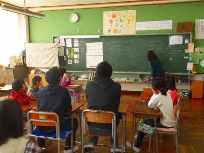 1月19日(月)LR級では,「コ」の字の机の配置で,全員そろって相談をしていました。それは,2月5日(木)に行われる中学校との交流で「おもてなし」をするための話し合いでした。