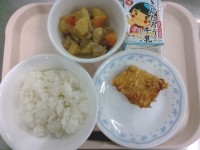 献立・牛乳・ごはん・鰯の竜田揚げ・鶏と大豆の旨煮 今日の節分にちなみ、鰯と大豆を使った給食です。鰯は揚げてあるので、尾びれまで美味しく食べてくれたクラスが多くありました。鶏と大豆の旨煮は欠席が増えてい...