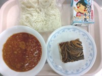 献立・牛乳・担々うどん・青のりポテトビーンズ 大豆は給食室で煮てから、油で揚げ、海苔塩を絡ませました。大豆が苦手な子も食べやすい味付けで進みます。 担々うどんは、ホットラーメンで食べる担々麺のアレンジ...