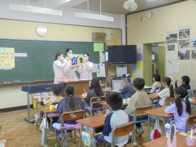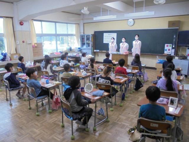 10月22日(水)に1年生が 神奈川県歯科短期大学部の学生さんに歯科刷掃指導をしてもらいました。乳歯や永久歯の話の他、歯磨きの仕方など丁寧に教えてもらいました。授業の後半には実際に歯ブラシを持ち、歯磨きをしました。1年生の皆さん、これからも歯を大切にしてくださいね。