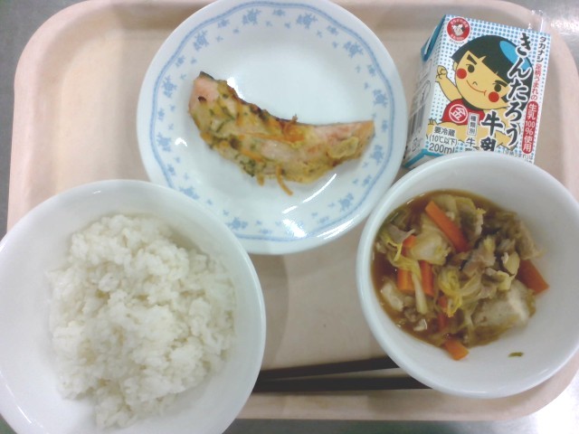すき焼き風煮物は肉、豆腐、野菜がたっぷり入ります。野菜から出る水分だけで煮込んでいるので旨味が凝縮されています。甘じょっぱくて子どもたちが好きな味付けです。