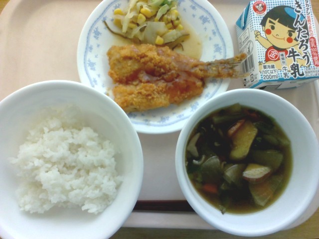 かますは小田原産です。ソースに使用した梅干しも小田原産なので、今日は小田原がいっぱいの給食でした。さつまいもも学校農園で収穫したものを使用しています。