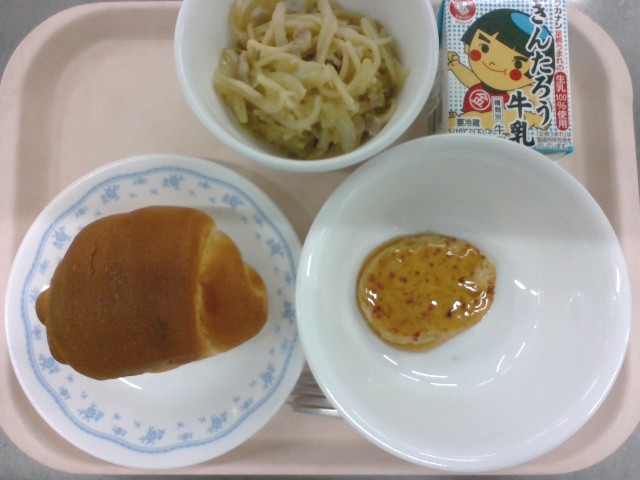 キャベツのパスタソテーはにんにくや唐辛子が効いています。低学年には辛味が少し強かったかもしれませんが「パンと合わせて食べると美味しい」と言いながら食べてくれました。